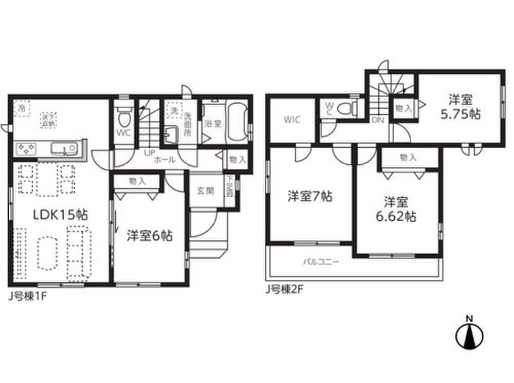 | 建物面積 | 90.15m2~97.09m2(27.27坪~29.36坪)(実測) | 土地面積 | 108.15m2~124.45m2(32.71坪~37.64坪)(実測) |
