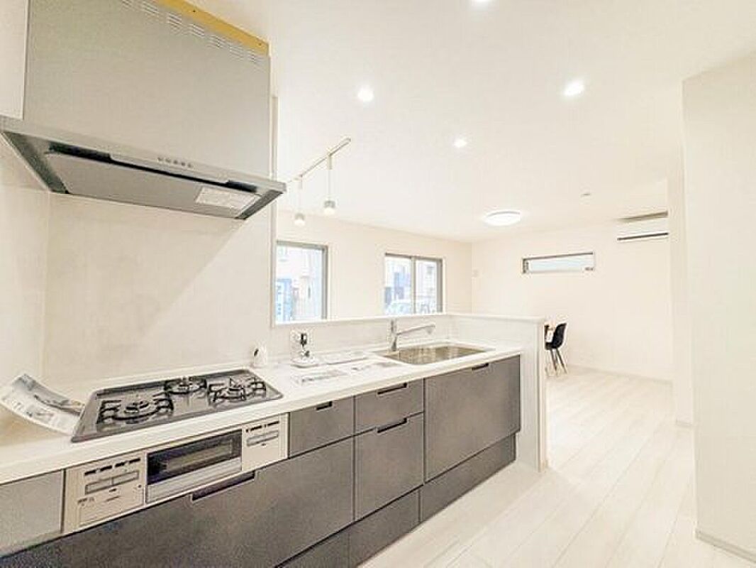 ■対面式キッチンを採用。家事をしながらリビングでくつろぐご家族とコミュニケーションが取れる人気の間取りです!