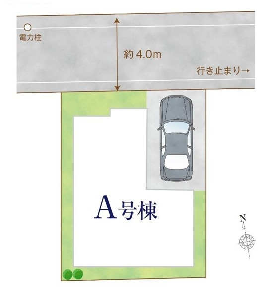 | 駐車場 | 1台 | 道路の幅員 | 北側幅員4m私道位置指定有り |