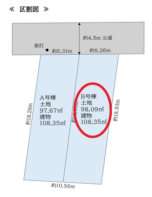 | 建物面積 | 108.35m2 | 土地面積 | 98.09m2 |