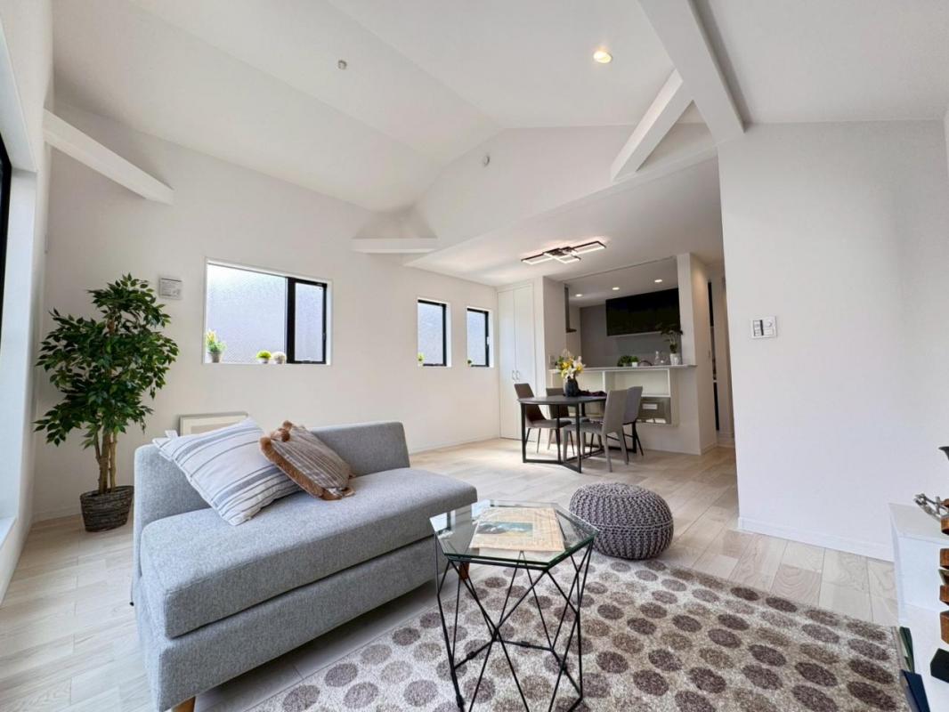 ◆リビング上部を高天井にする事で抜群の開放感を演出しております。暮らしの中心となる場所だからこそ快適性に拘りました。一日中、明るく輝きに満ちた空間を演出しております。