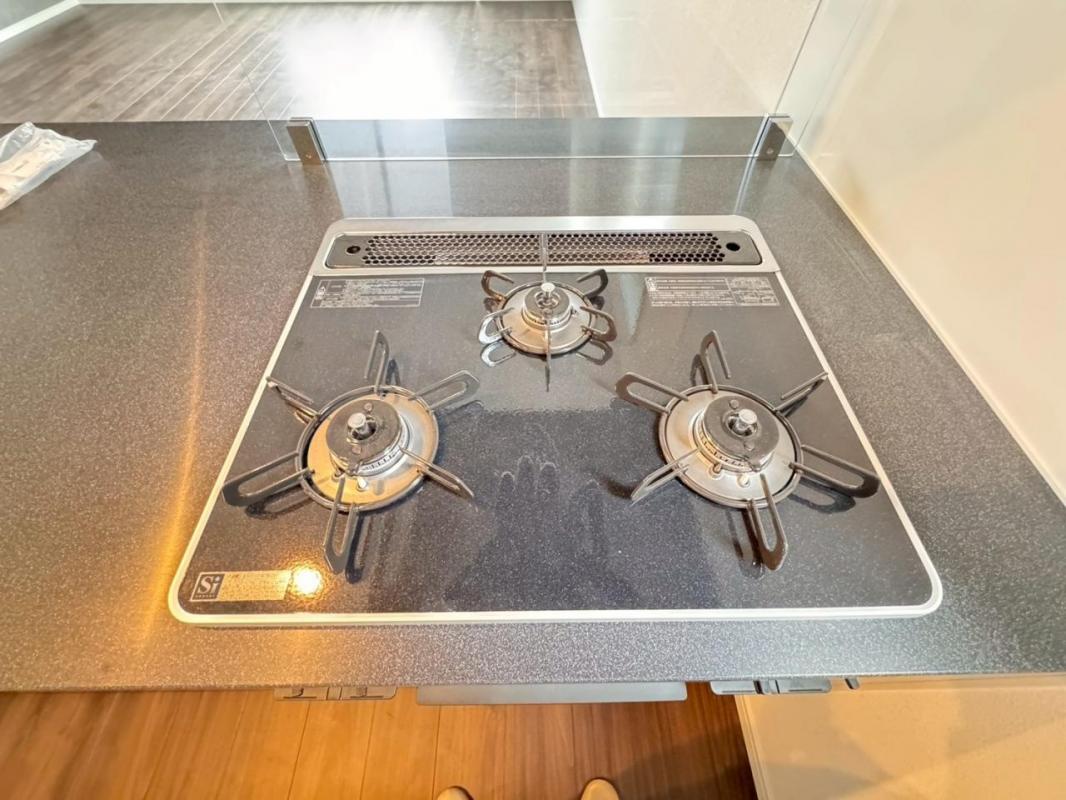 ◆機能充実のシステムキッチンです。浄水器一体型水栓に3口グリルコンロ、食洗器と充実しておりママの家事をサポート致します。