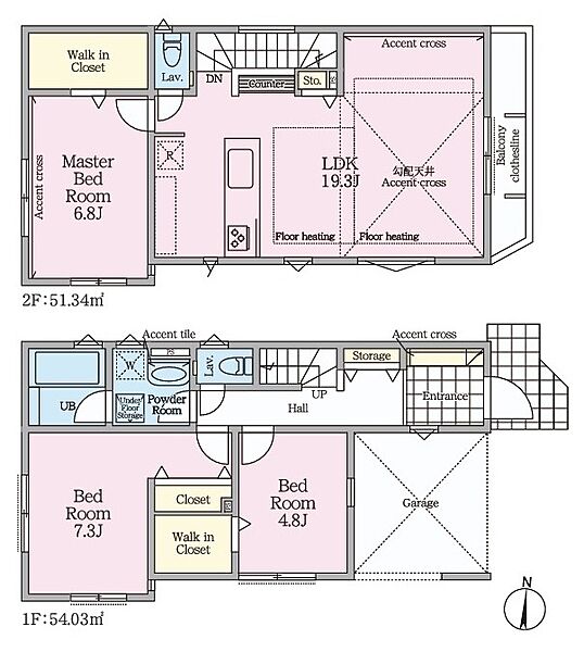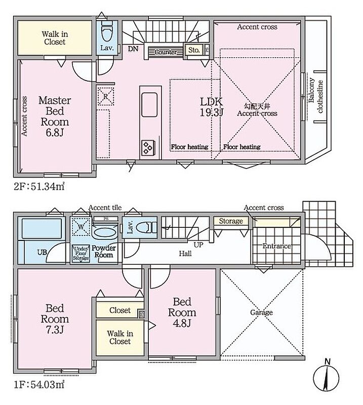 ◆2階6.8帖、1階4.8帖の居室には大容量のウォークインクローゼットを設けました。
