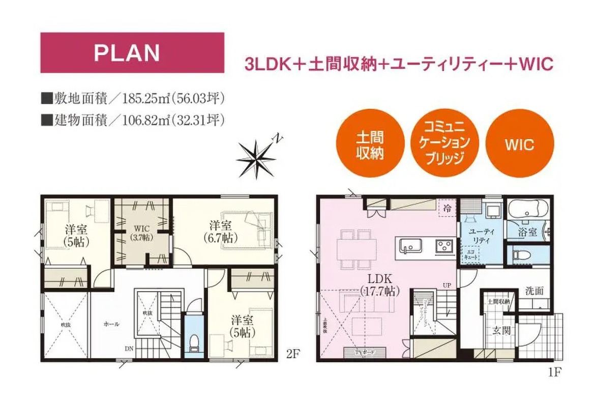 | 建物面積 | 106.82m2 | 土地面積 | 185.25m2 |