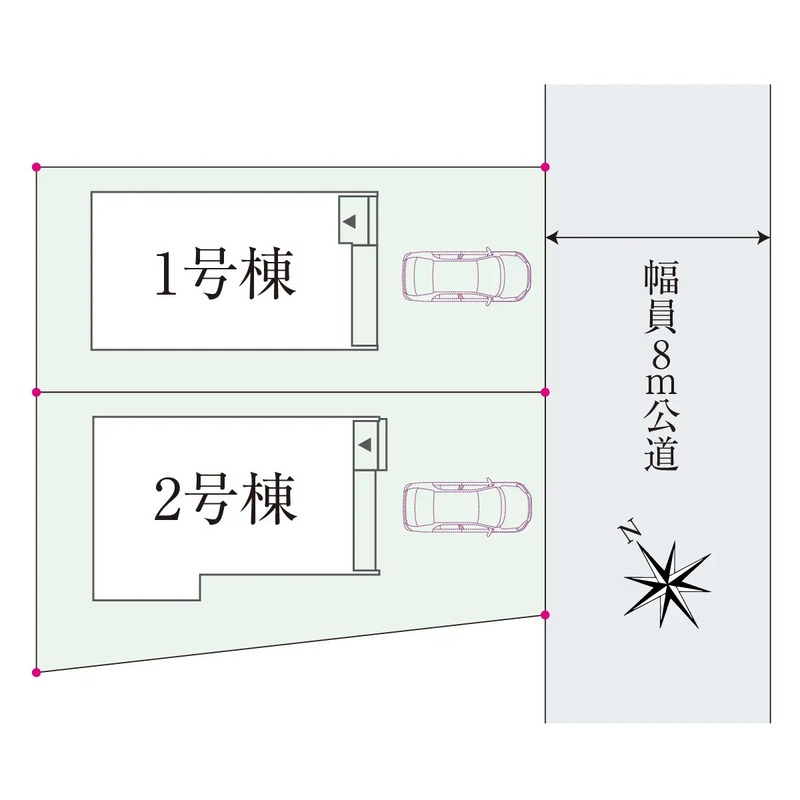 | 駐車場 | 1台 ~ 2台 | 道路の幅員 | 南東側8m公道 |