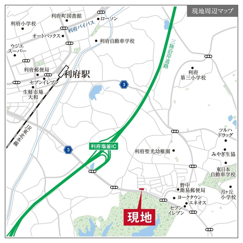 - ※地図、航空写真情報および地形ならびに周辺のお店・施設は、必ずしも現況を表すものではありません。