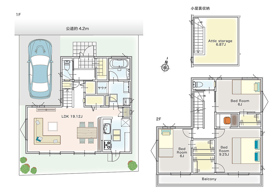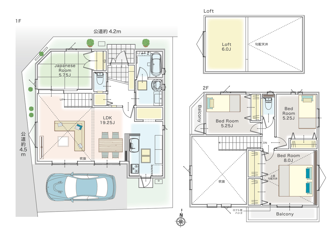 | 駐車場 | 1台 | 道路の幅員 | 西側4.5m、北側4.2m |