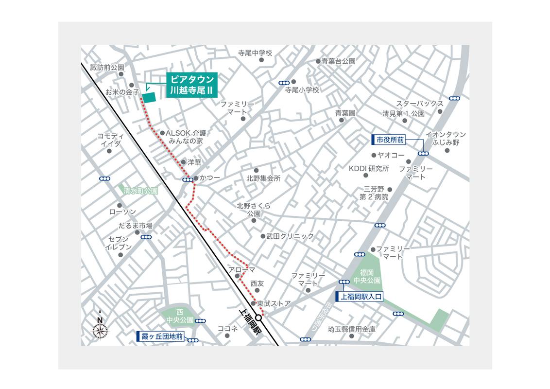 東武東上線「上福岡」駅 徒歩15分 東武東上線「新河岸」駅 徒歩17分 |