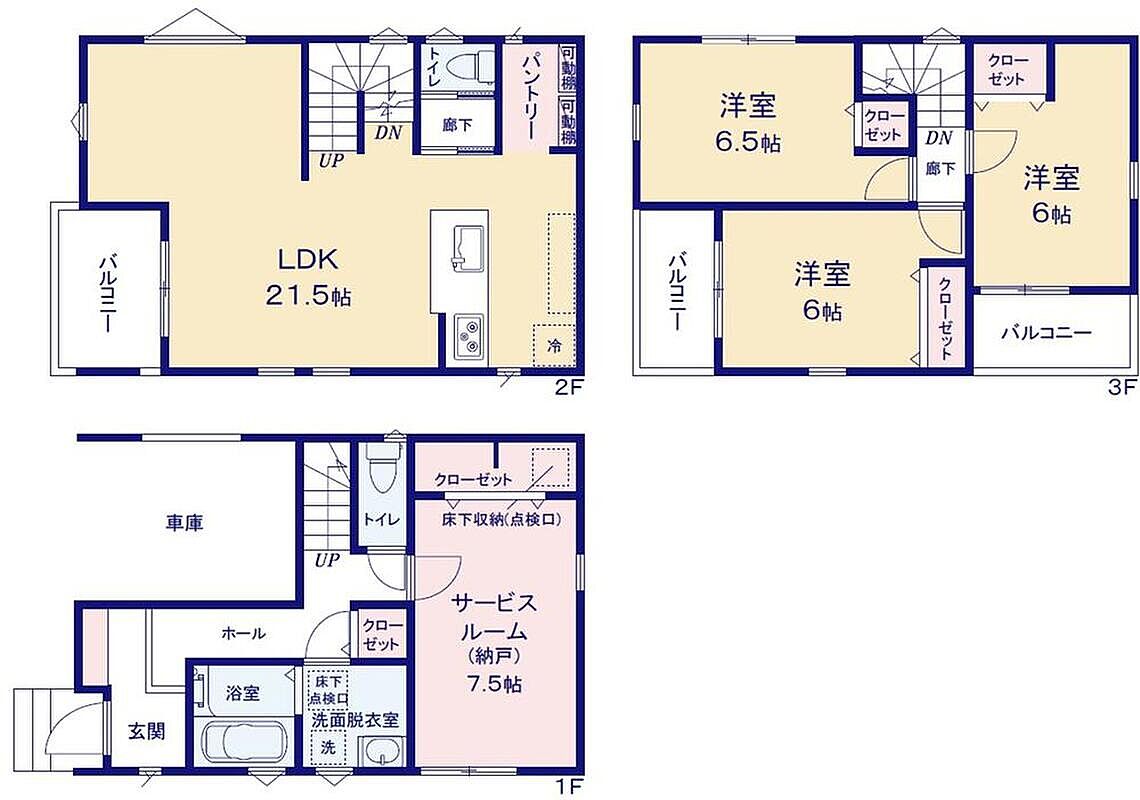 | 間取り | 3LDK+S(納戸) | 建物構造 | 1号棟:木造3階建、2号棟:木造2階建 |
