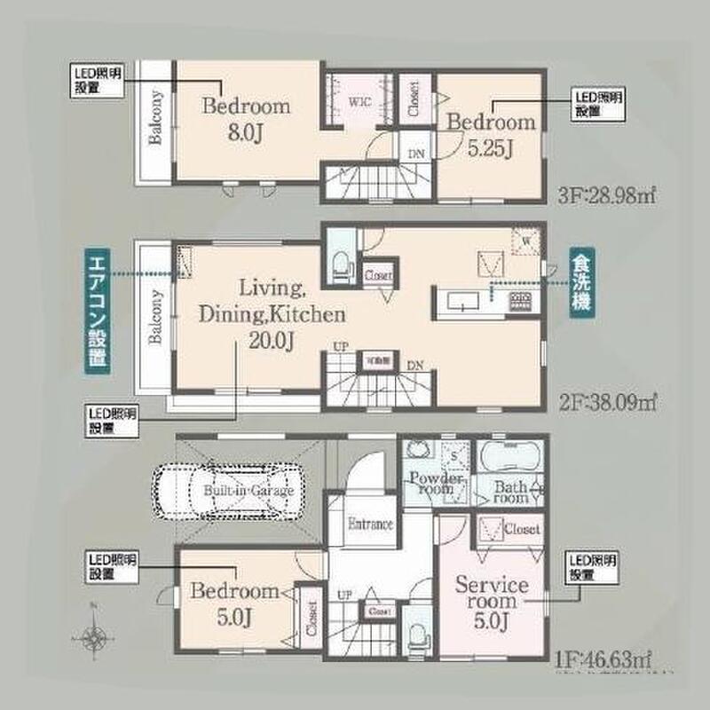 | 建物面積 | 113.7m2 | 土地面積 | 80.53m2 |