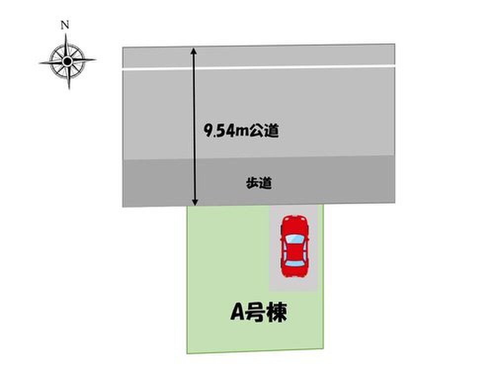 | 駐車場 | 1台 | 道路の幅員 | 道路幅:9.5m、アスファルト舗装、北 9.54m 公道 |