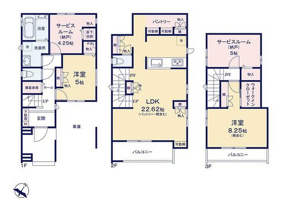 | 間取り | 2LDK+2S(納戸)・3LDK | 建物構造 | 木造3階建 |