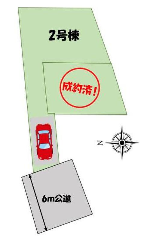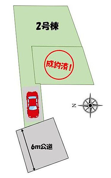 | 駐車場 | 1台 | 道路の幅員 | 道路幅:6m、アスファルト舗装、東側約6m公道 |