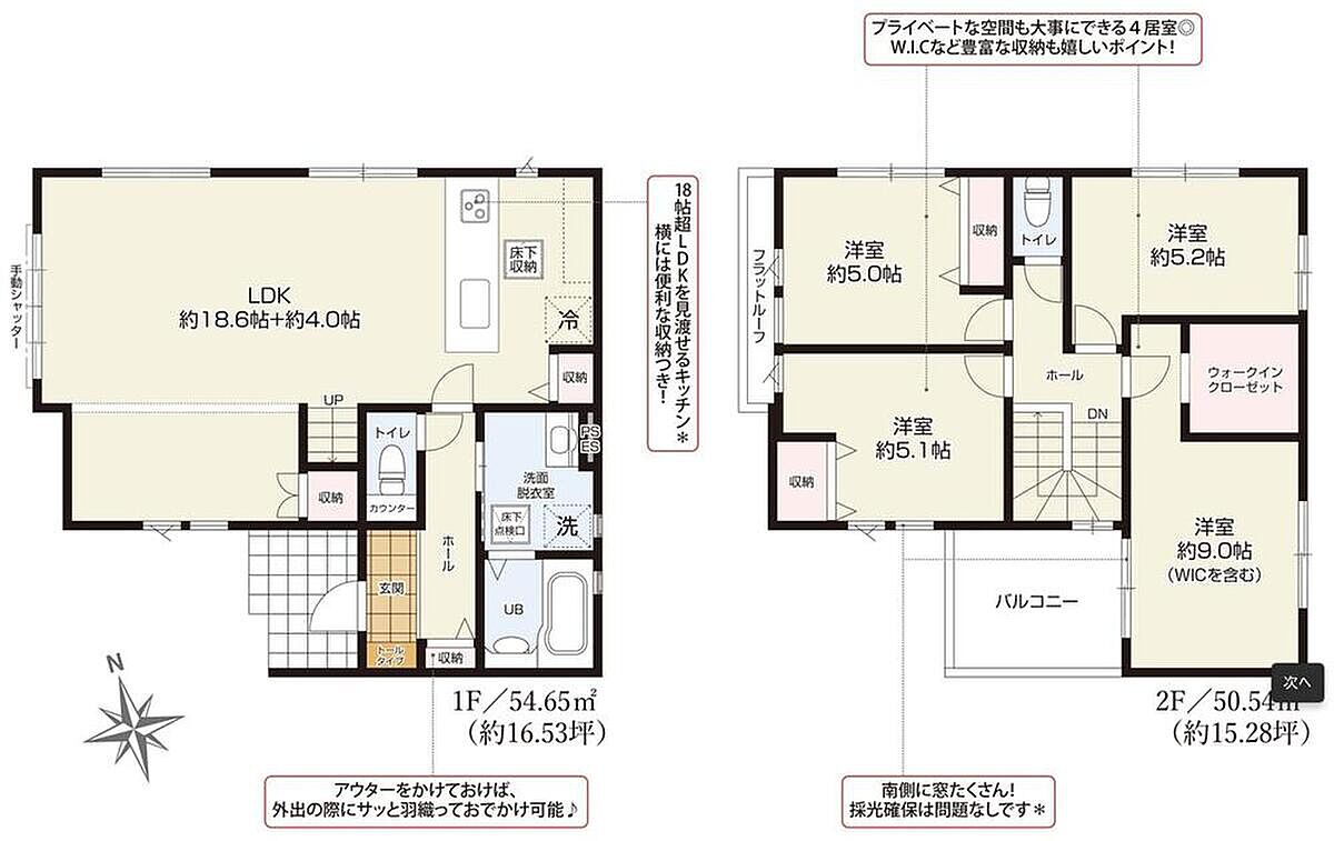 複数の方角から部屋へ日光を採り入れることができるため、一日を通して陽当たりが良く部屋が明るくなります。今の時代に欠かせない換気も良好です!