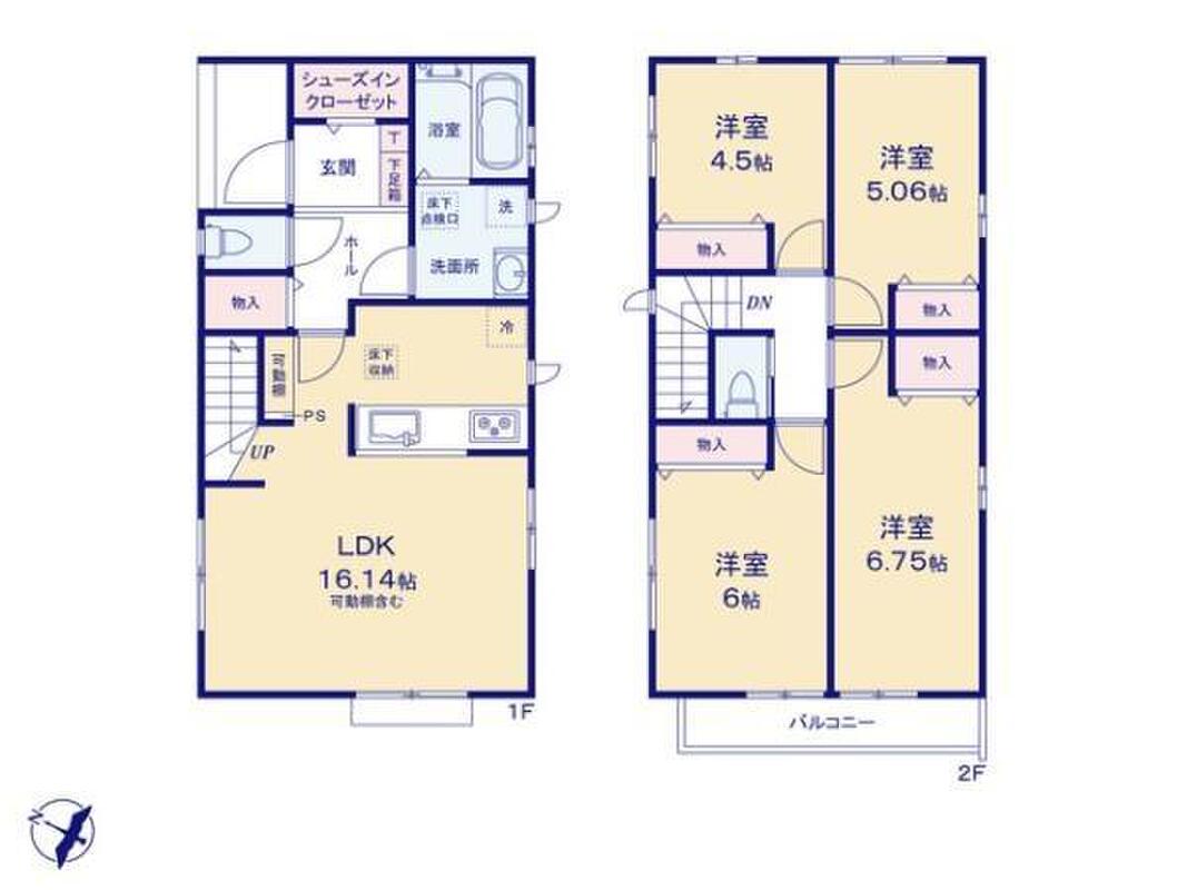 | 間取り | 3LDK+S(納戸)・4LDK | 建物構造 | 木造サイ ディング貼アスファルトシングル葺2階建て |