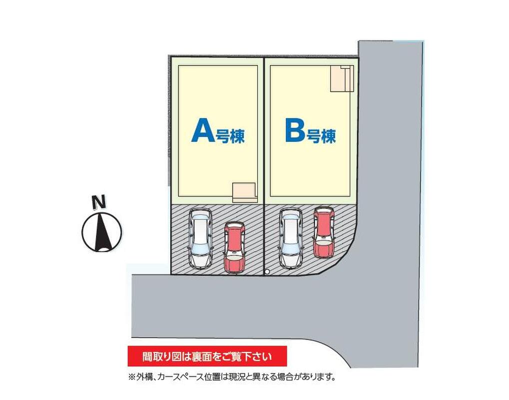 | 建物面積 | 96.88m2・97.7m2 | 土地面積 | 100.19m2・102.76m2 |