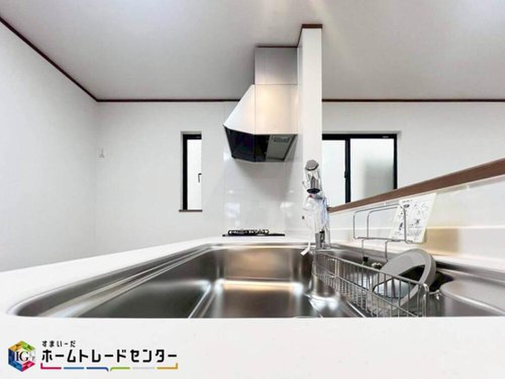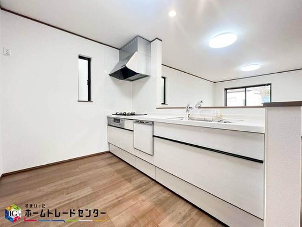 対面式キッチンは家族との大事なコミュニケーションも取りやすく自然と会話が増えるような設計となっています。床下の収納スペースもちょっとした物を収納できるので嬉しい魅力♪