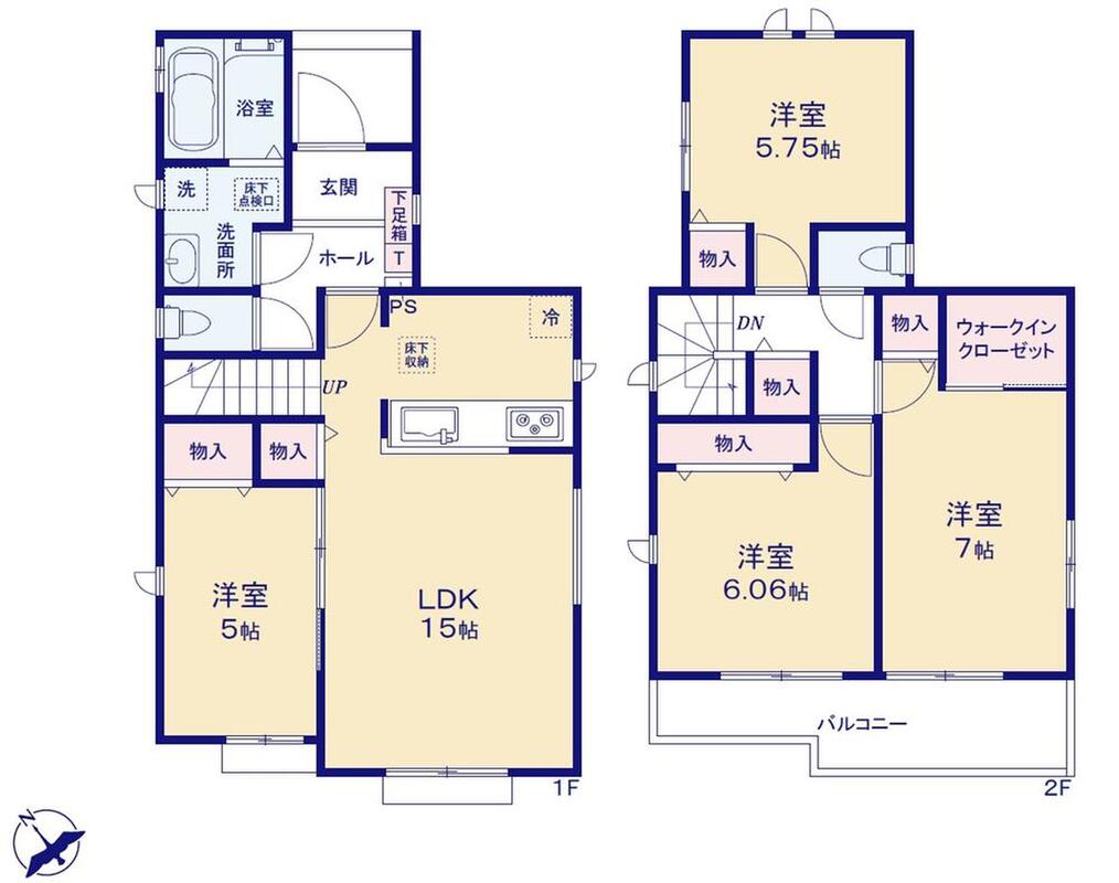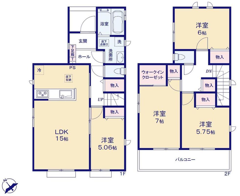 | 建物面積 | 93.56m2・96.26m2 | 土地面積 | 107.5m2・113.44m2 |