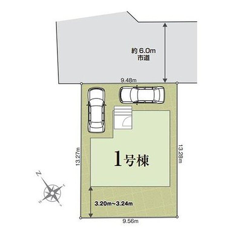 | 駐車場 | 2台 | 道路の幅員 | 道路幅:5.5m、アスファルト舗装、北側6m市道 |