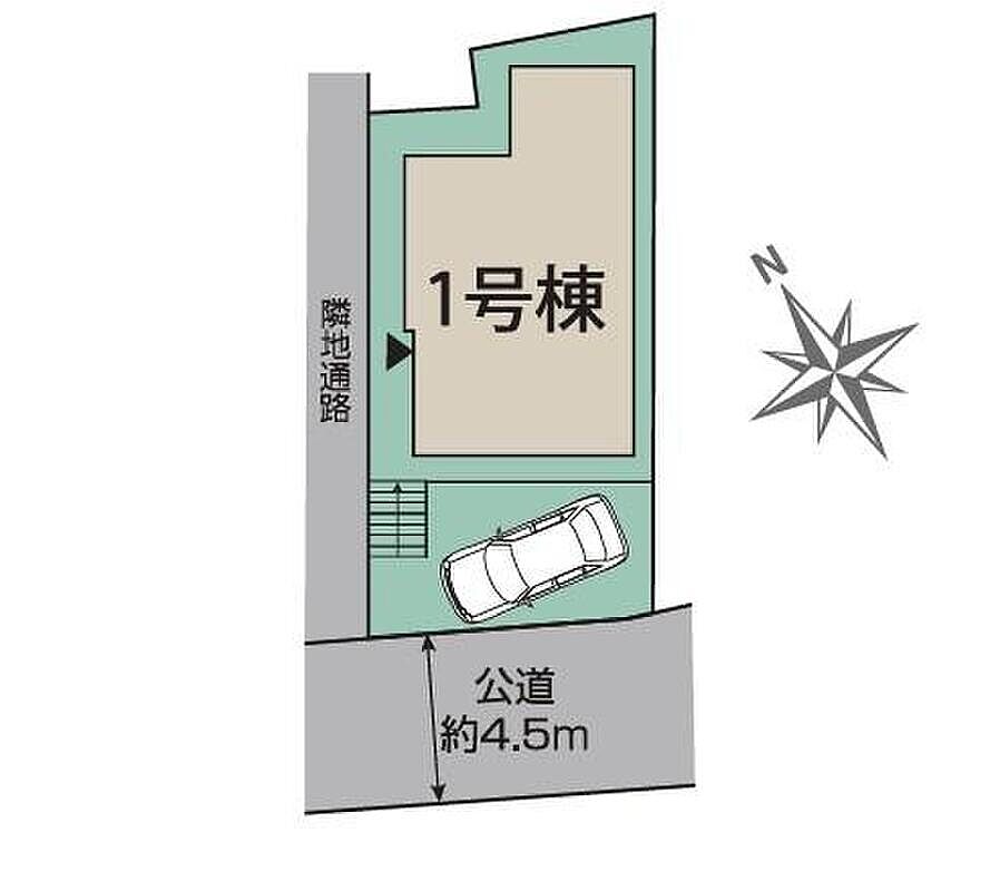 | 駐車場 | 1台 | 道路の幅員 | 道路幅:4.5m、アスファルト舗装、南 4.5m 公道 |