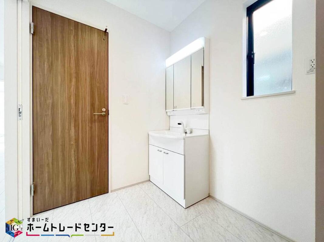 窓から明るい光が差し込む洗面所。ゆとりの洗面スペースで朝の身支度も快適スムーズに。3面鏡で髪のセットやお化粧もストレスなくこなせ、朝から気分良く通勤通学に向かえそうですね!鏡の裏にはたっぷりと収納スペースを標準装備!