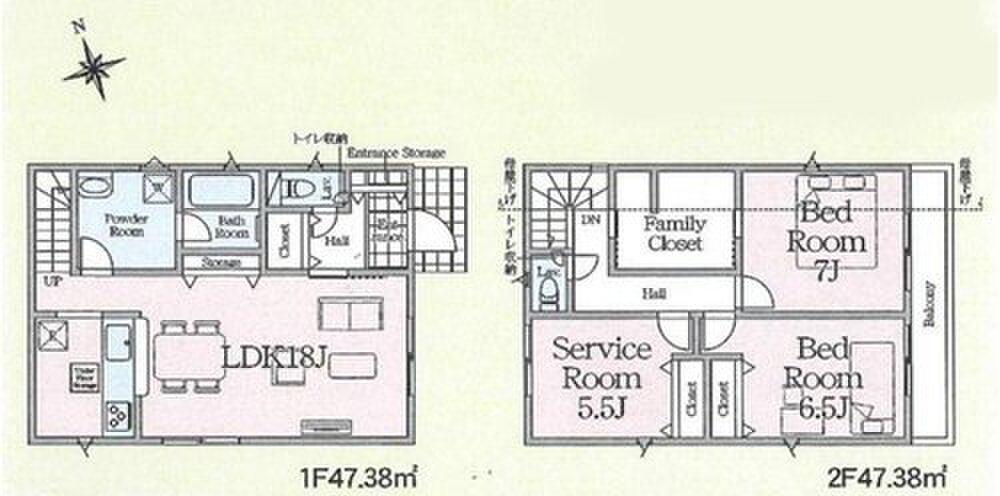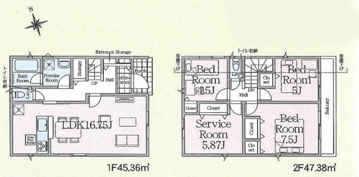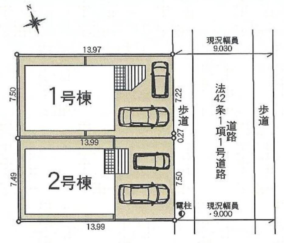 | 建物面積 | 92.74m2・94.76m2 | 土地面積 | 104.95m2・104.96m2 |