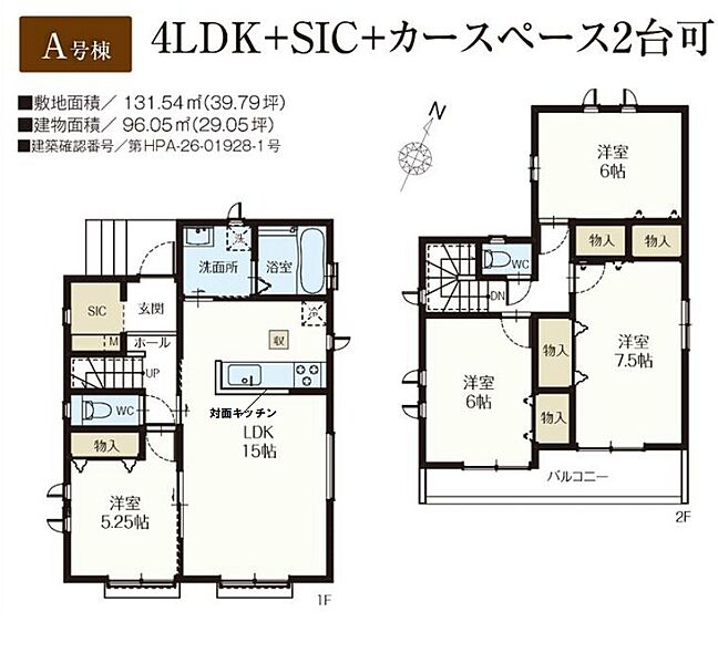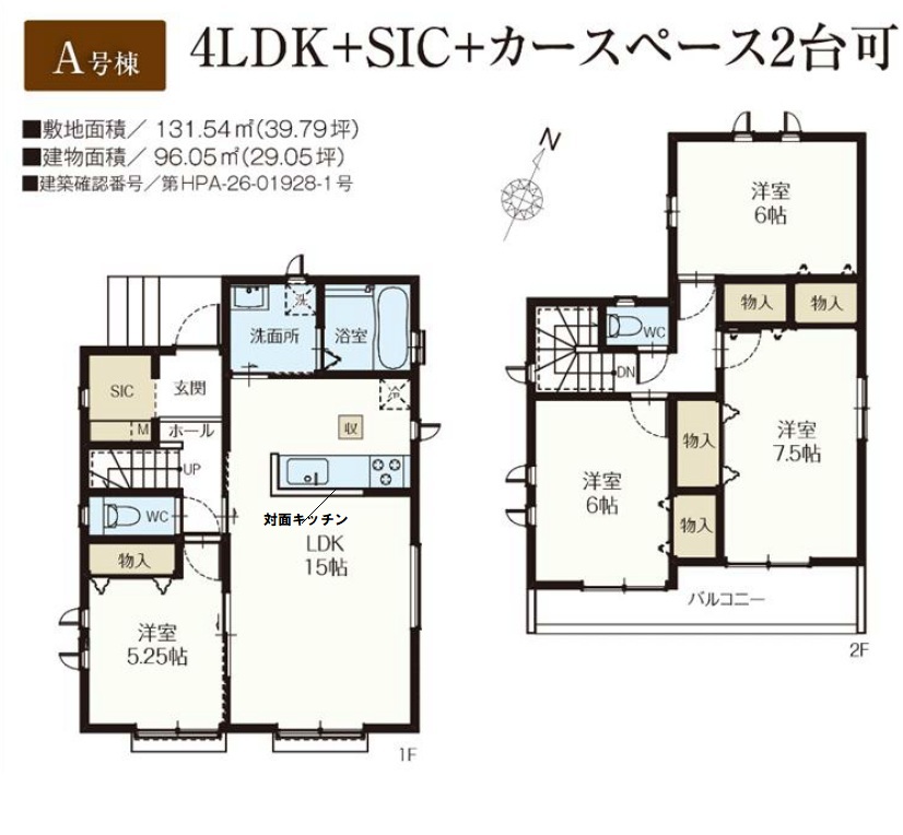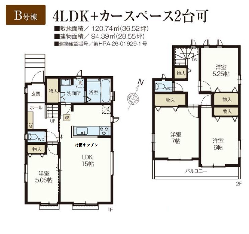 | 駐車場 | 2台 | 道路の幅員 | 北側6.0m公道 |