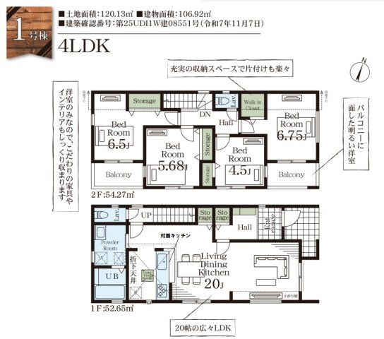 | 建物面積 | 106.92m2 | 土地面積 | 120.13m2 |