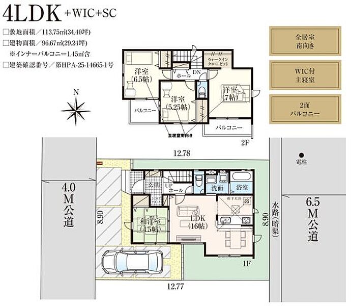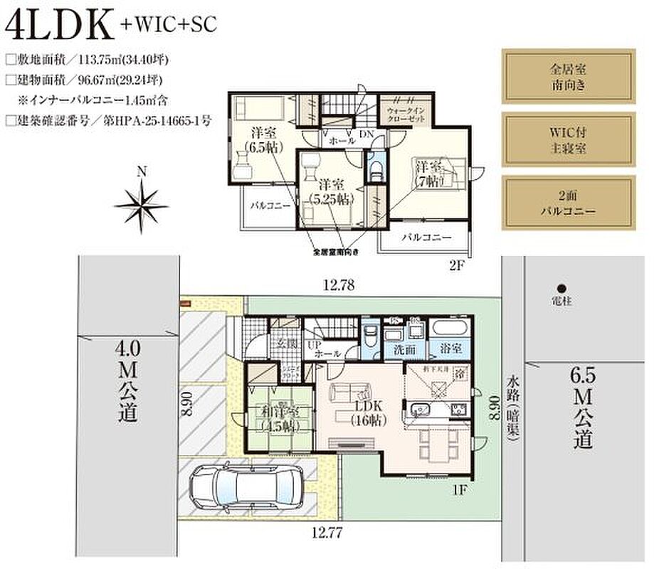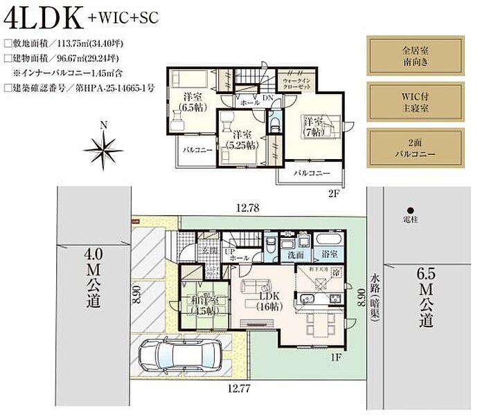 | 建物面積 | 96.67m2 | 土地面積 | 113.75m2 |