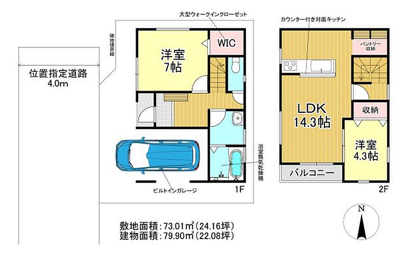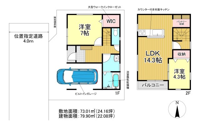 | 建物面積 | 105.57m2 | 土地面積 | 73.01m2 |