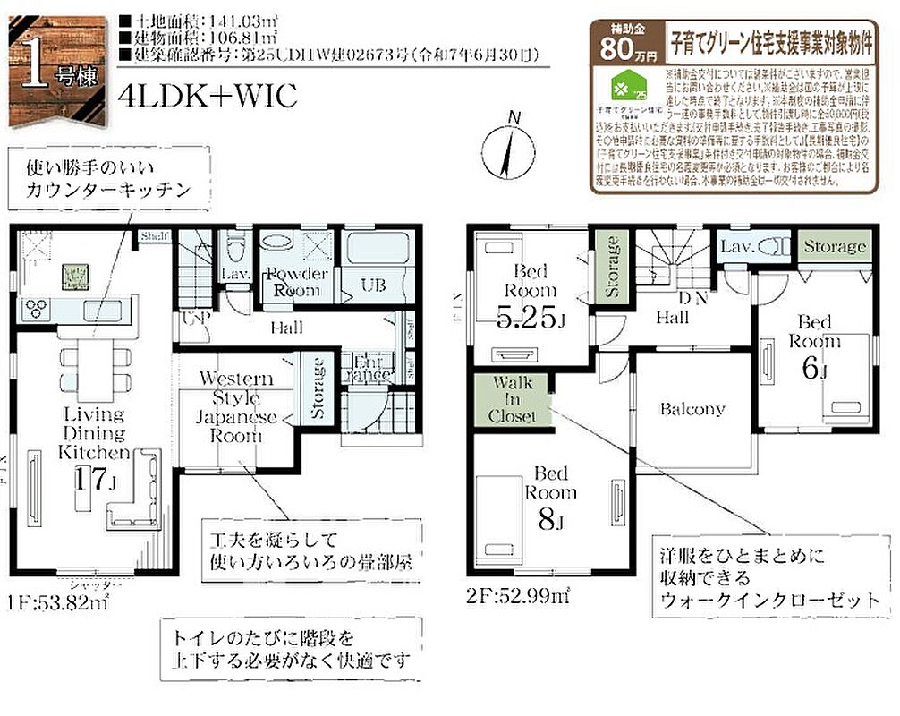 | 建物面積 | 106.81m2 | 土地面積 | 141.03m2 |