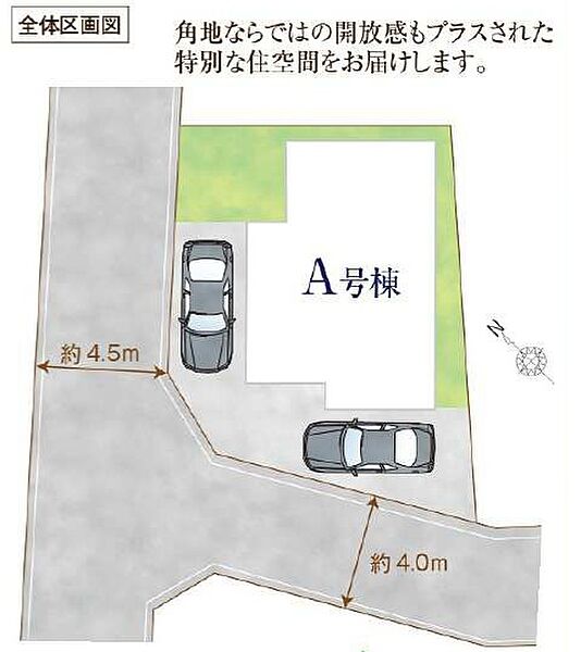 | 駐車場 | 2台 | 道路の幅員 | 北西側4.5m公道 |