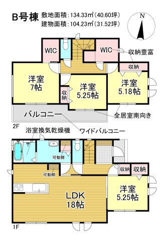 | 建物面積 | 103.71m2~104.23m2 | 土地面積 | 134.33m2~148.55m2 |