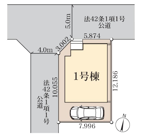 | 駐車場 | 1台 | 道路の幅員 | 北側5.0m公道 |