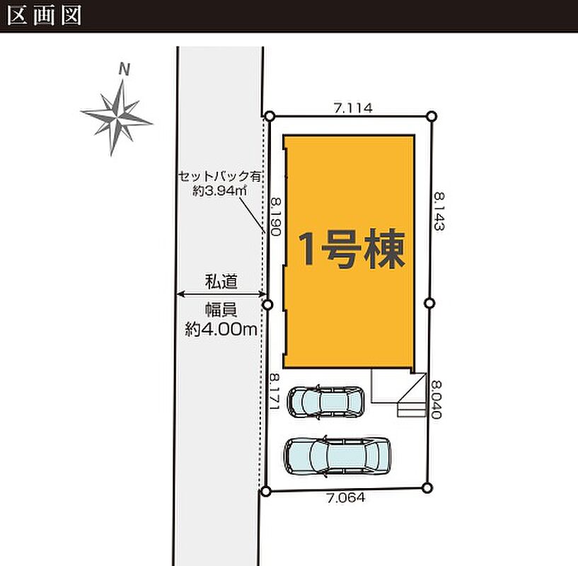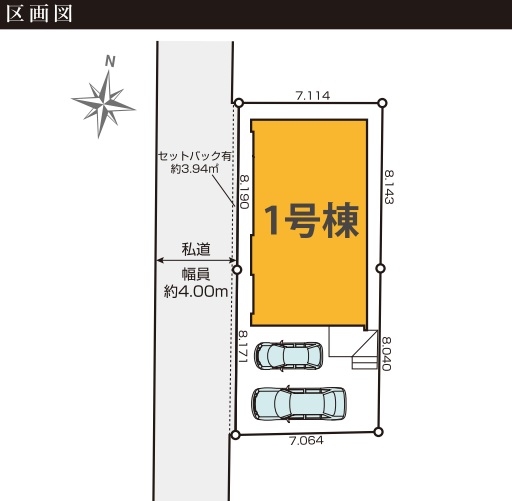 | 駐車場 | 2台 | 道路の幅員 | 西側4.0m私道 |