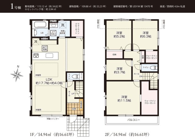 | 建物面積 | 109.88m2 | 土地面積 | 115.12m2 |