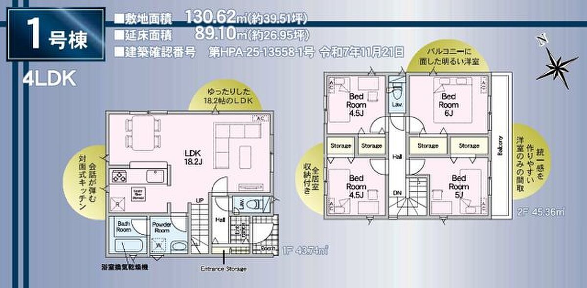 | 建物面積 | 89.10m2~95.57m2 | 土地面積 | 124.46m2~132.24m2 |