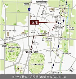 ファミリーレストランなどの飲食店が充実しているエリアです。「オリックスレンタカー 宮崎駅前店」などもあり、レンタカーも気軽に利用できます。「マックスバリュ 宮崎駅東店」などのスーパーもあり、買い物に便利です。
