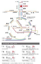 さいたま市の南側に位置する浦和区には約16万人が暮らしています。主要駅である浦和駅からは東京駅まで「京浜東北線」で約30分、新宿駅まで「湘南新宿ライン」で約30分とどちらも乗り換えなしで到着できるアクセスの良さが魅力です。