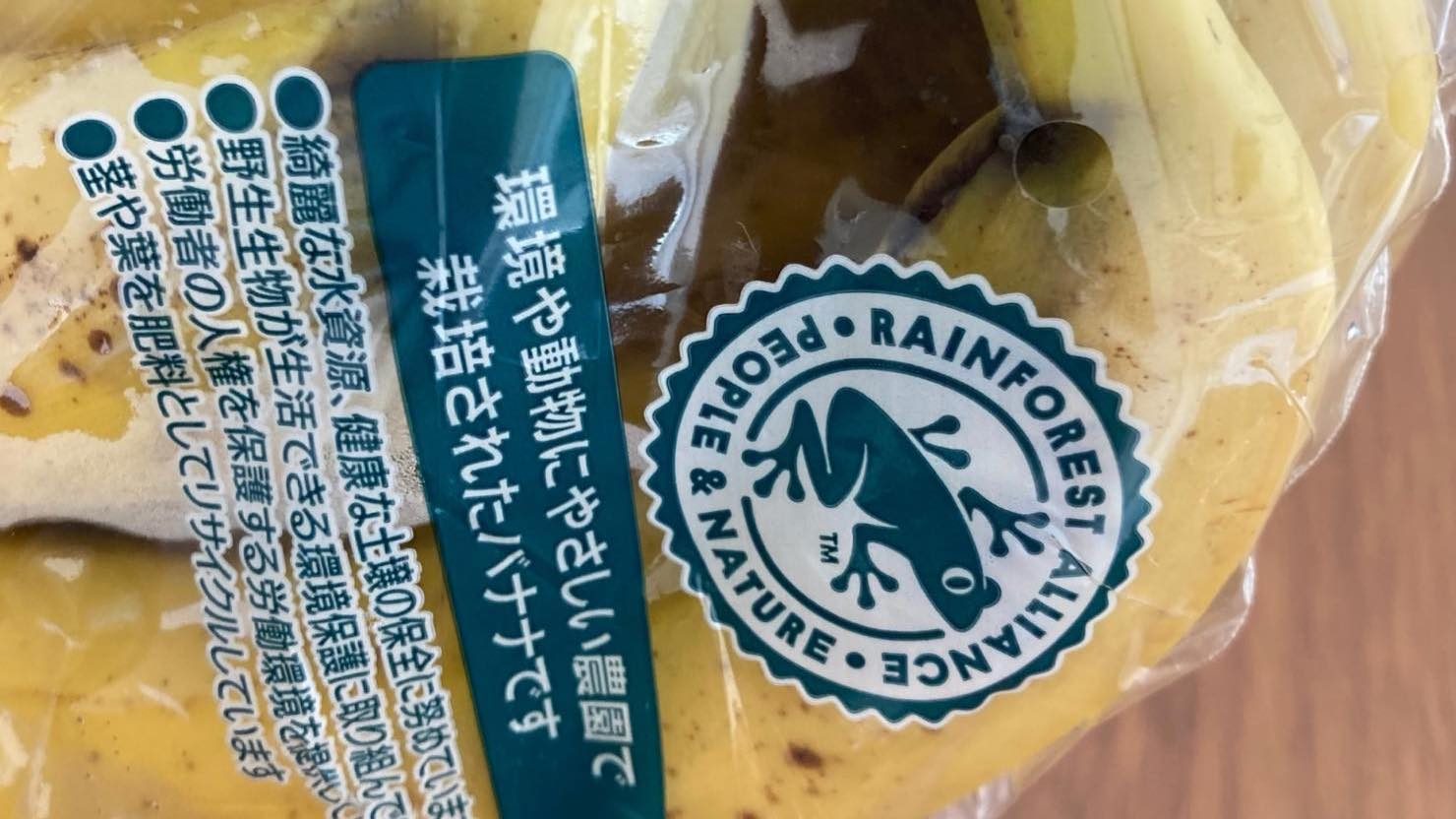 かわいいカエルのマークが特徴です。買い物の際は、フェアトレードやレインフォレストアライアンス、各国のオーガニックマークなどを見つけてみましょう。