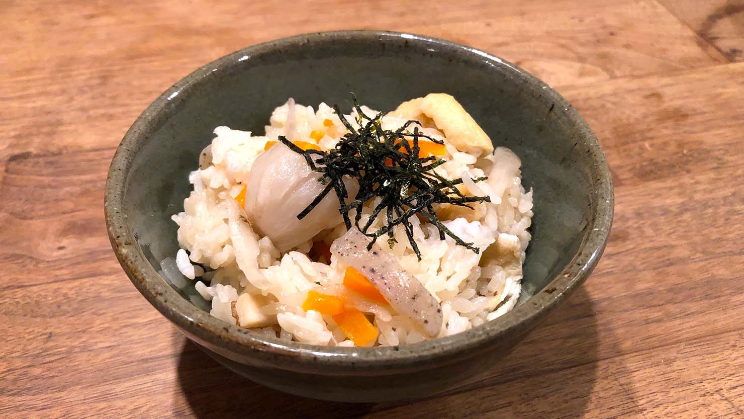 さまざまな具材を加えた炊き込みご飯が「かやくご飯」。かやくは漢字で「加薬」と書きます。