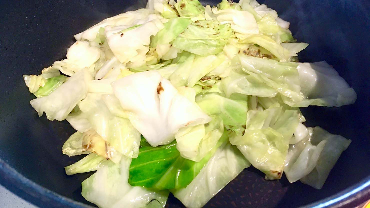 ⑧鍋の中にフライパンで炒めたキャベツを投入しましょう。