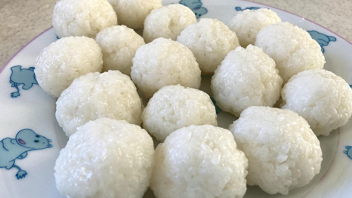 ④潰したお米を一口サイズに丸く整えたら完成です。