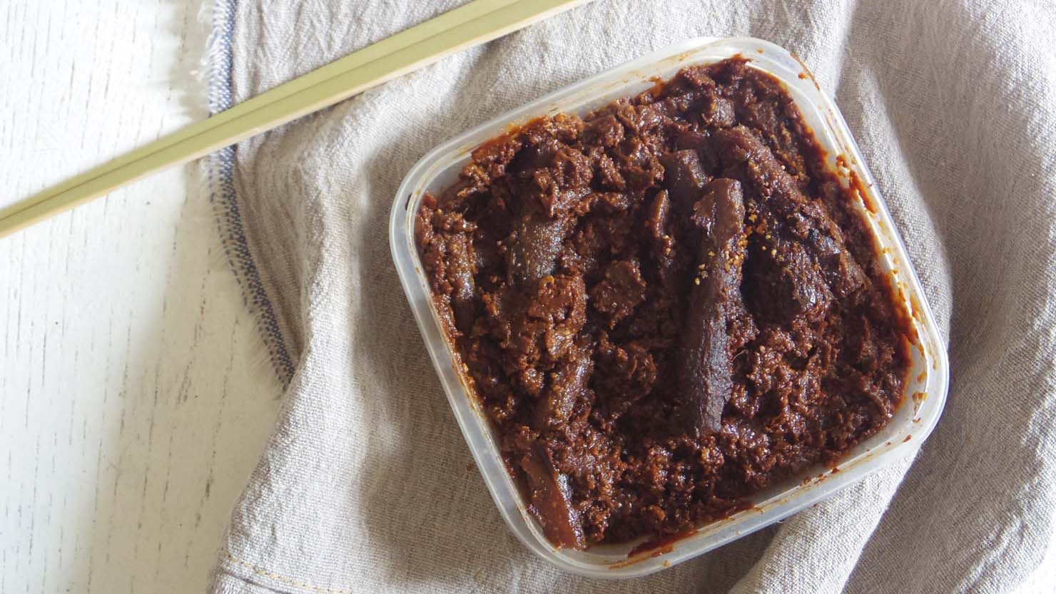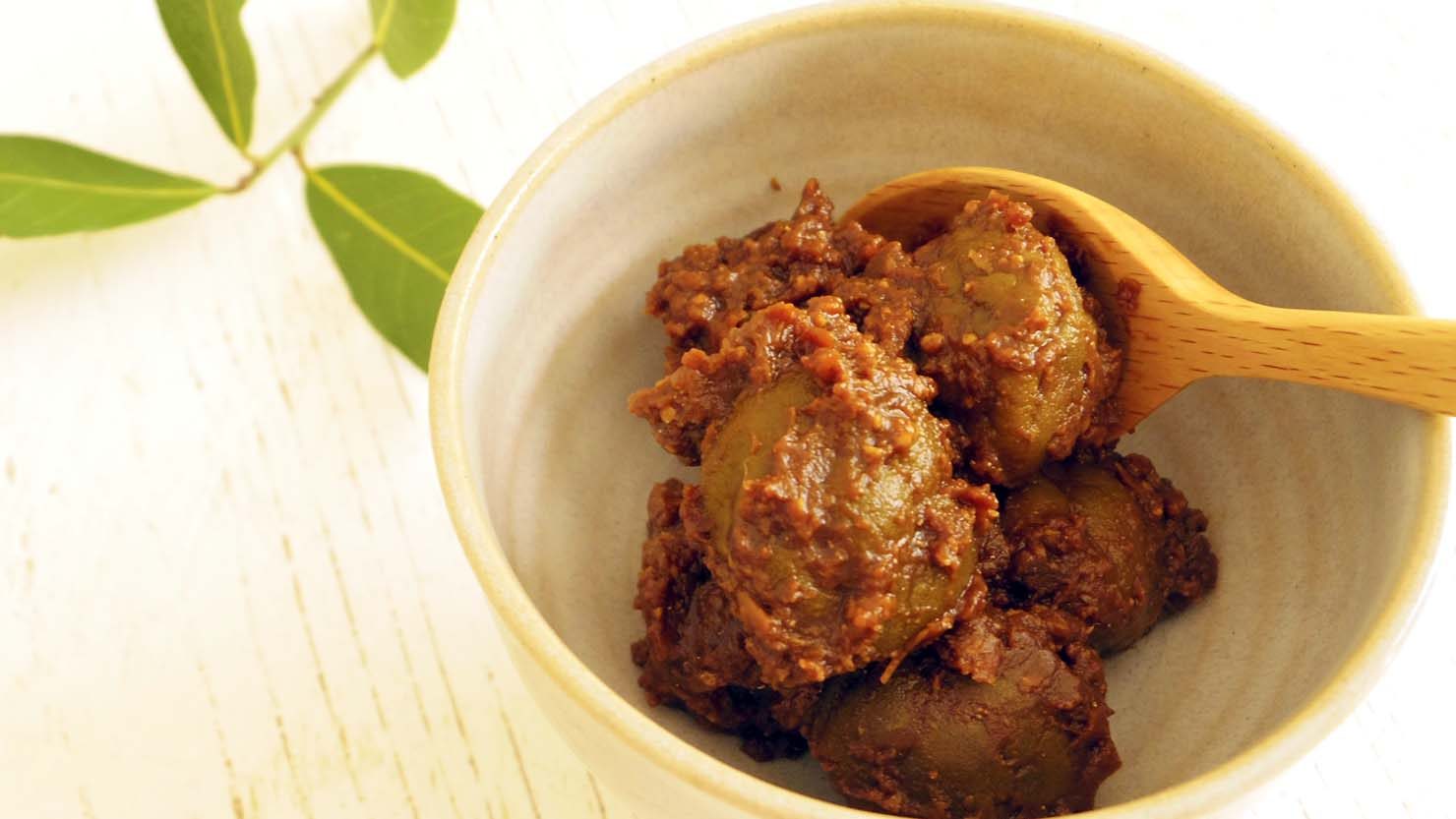 青梅を味噌に漬けて熟成させた「梅味噌」は、昔から梅の保存食としてよく知られていますが、赤味噌を使って作ると味わいが変わります。この梅味噌は、そのままごはんのお供として食べたり、たれやドレッシングとして活用したりと、使い勝手がいいところが魅力です。