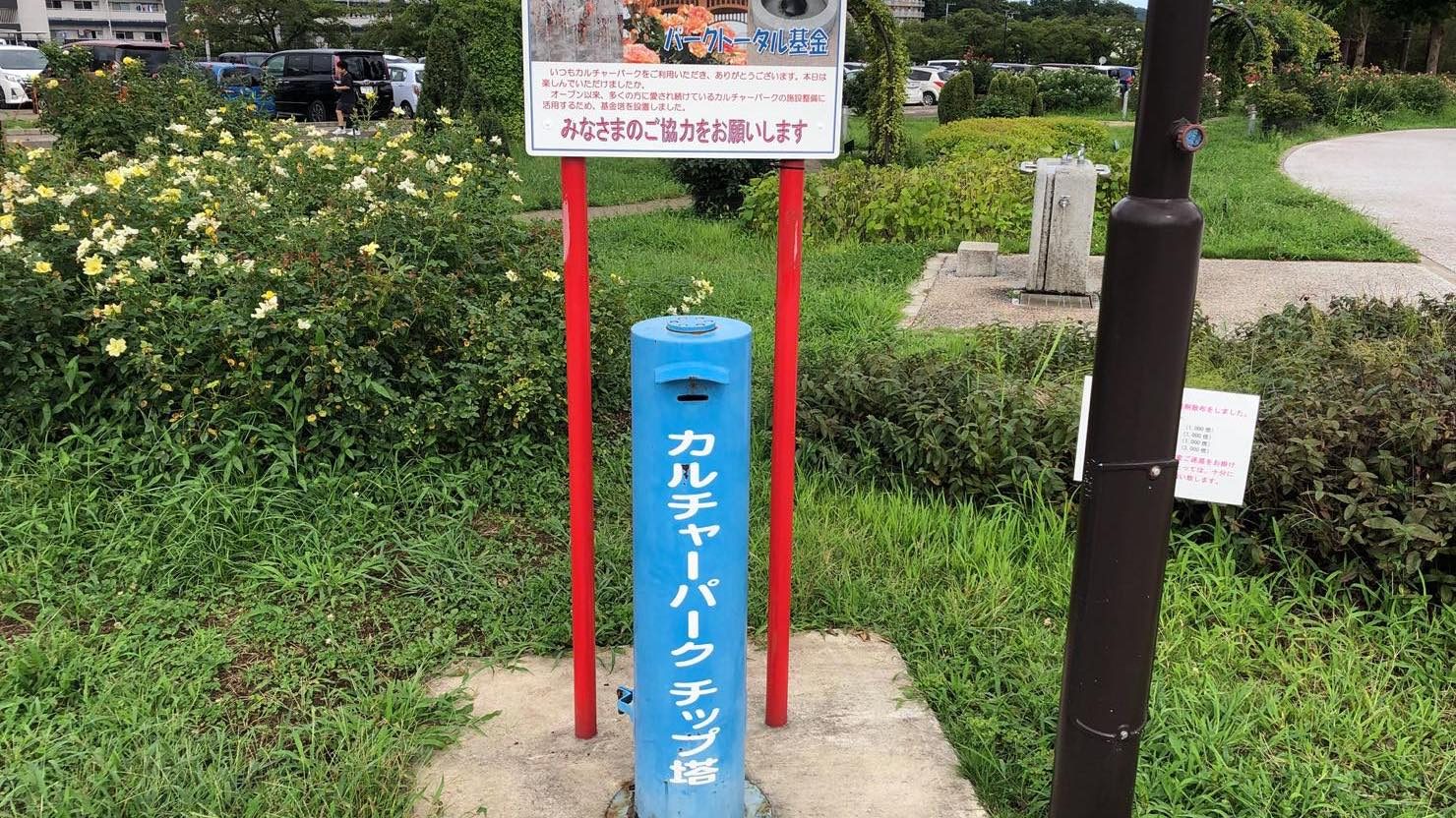 公園の設備の手入れが行き届いているのも特徴的です。公園内の東屋やベンチ、トイレもきれいです。秦野市の公園には「チップ塔」と呼ばれるポストに似た形の募金箱が設置されています。これは、公園施設の整備に充てることを目的とした募金です。