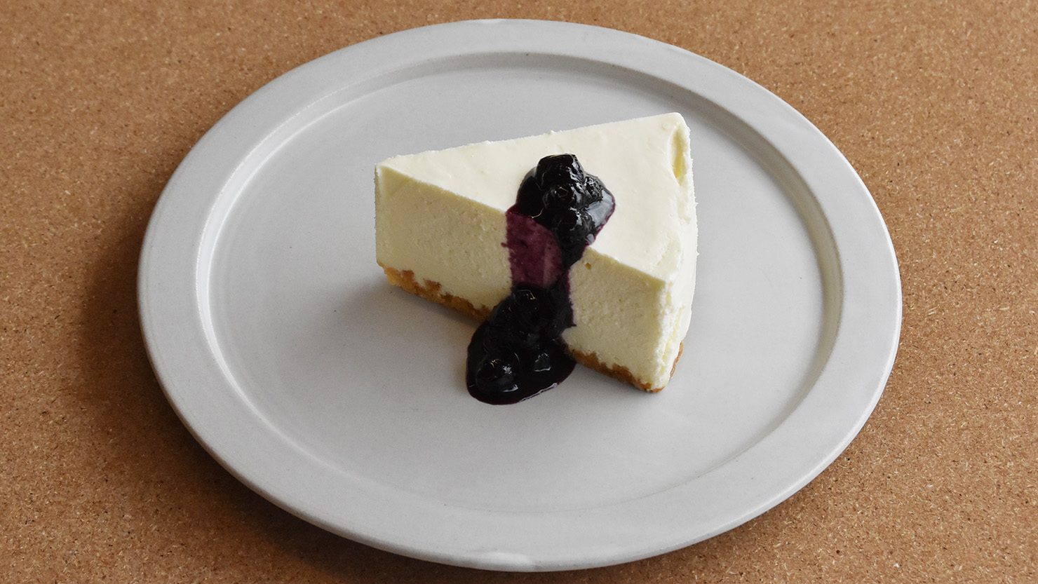 「濃厚でありながら後味はさっぱり。チーズケーキ好きにファンが多いんです」と話すのは、スタッフの芦田純菜さん。なめらかな口当たりで、ブルーベリーソースのほどよい甘酸っぱさがチーズの酸味と絶妙なバランスです。