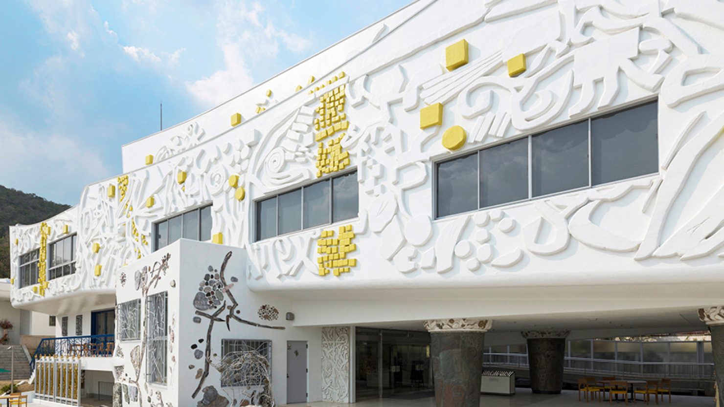 赤みを帯びたクリーム色の外壁にスペイン風屋根瓦、外壁レリーフや丸窓など、随所にこだわりがちりばめられています。この建物は1931年に竣工され、当時とほとんど変わらない姿を現在まで残していることから、2008年に国の有形文化財として指定されました。
