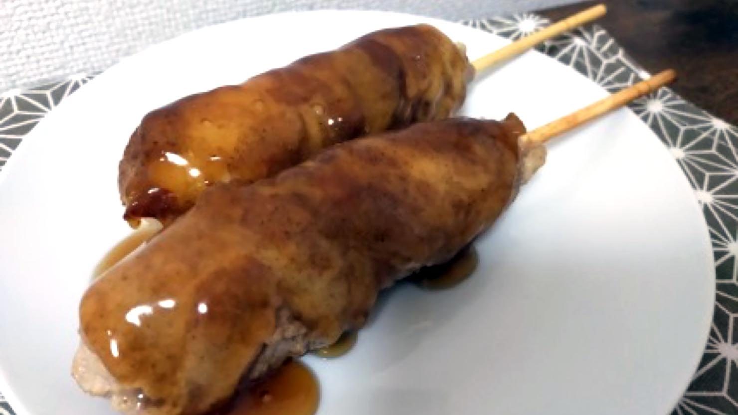 甘辛いみたらしのタレがかかった肉巻き団子です。串があるのでお花見中でも食べやすいです。お酒との相性もよく、わが家ではおつまみとしても人気です。
