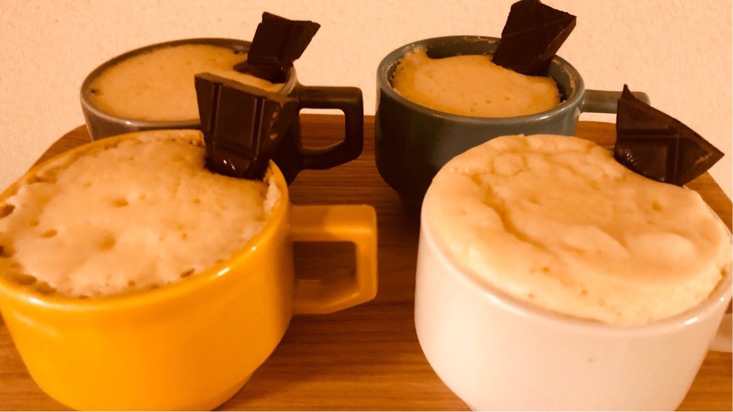4.600wのレンジに約2分加熱します。カップをひとつずつ熱していくとむらなくできます。
