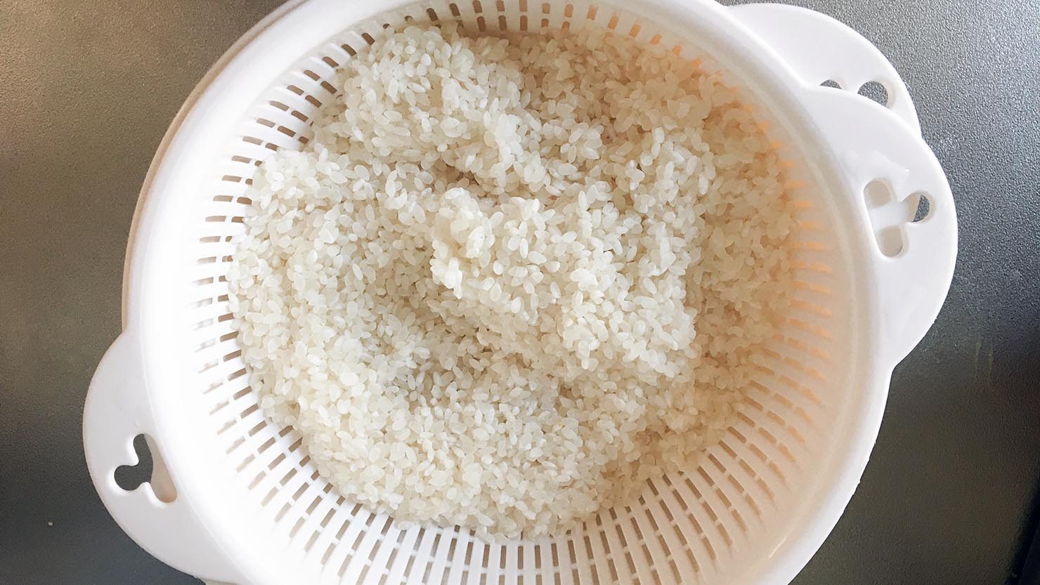 さらに仕上がりにこだわりたい方は、ざるにあげて置く前に浸水する時間をとりましょう。ボウルの中でお米が浸かる程度のお水で春夏なら30~60分程度、秋冬なら60~120分程度、浸水させればOKです。